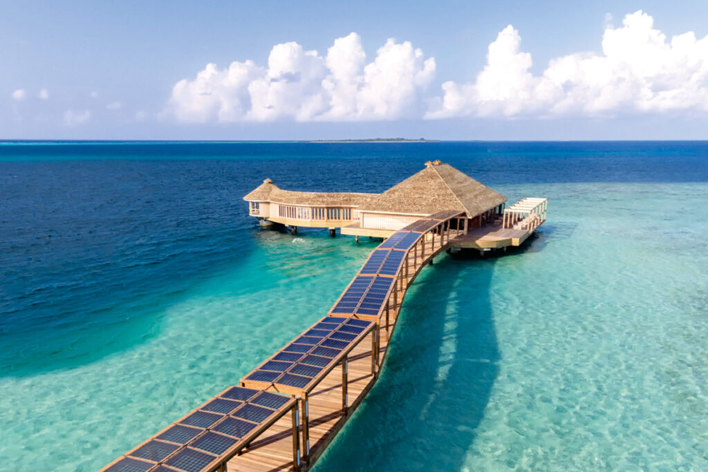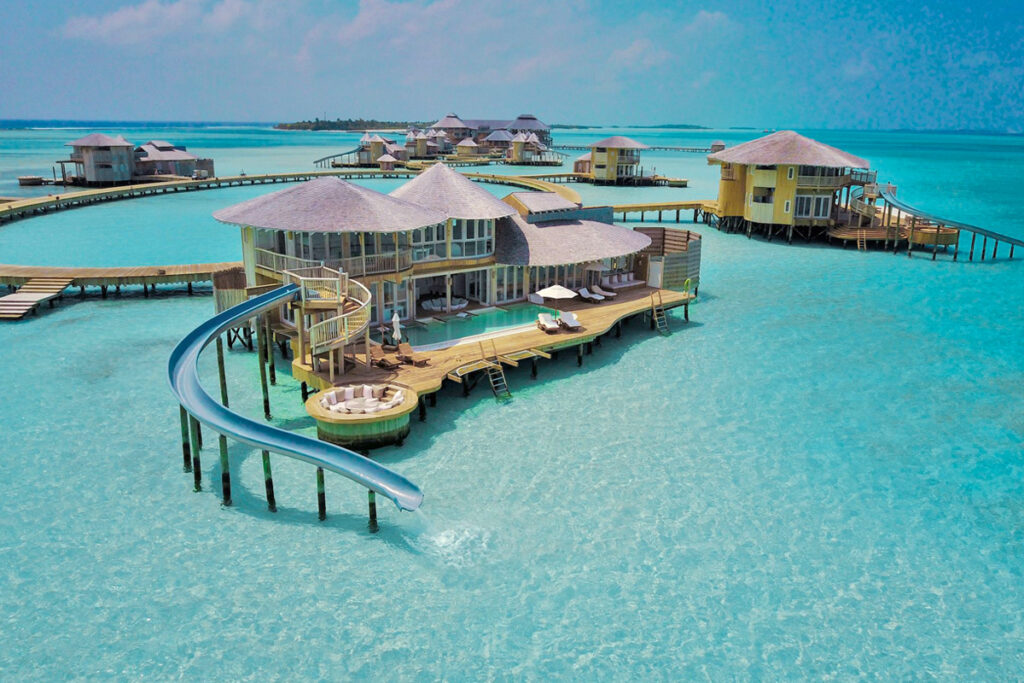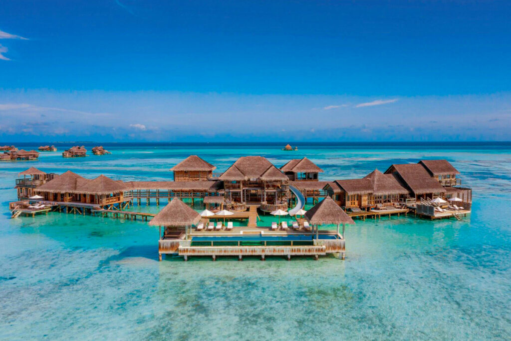 Hurawalhi is best known for its underwater restaurant and vibrant marine life. Its water villas offer uninterrupted ocean views and direct lagoon access.