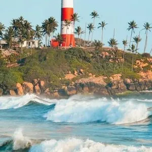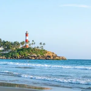 The crown jewel of Kovalam, Lighthouse Beach, is instantly recognizable with the historic Vizhinjam Lighthouse perched on a rocky headland. The lighthouse beams against the twilight sky, making evenings here picture-perfect. This stretch of beach offers both natural beauty and cultural charm, making it the highlight of every Kovalam package.